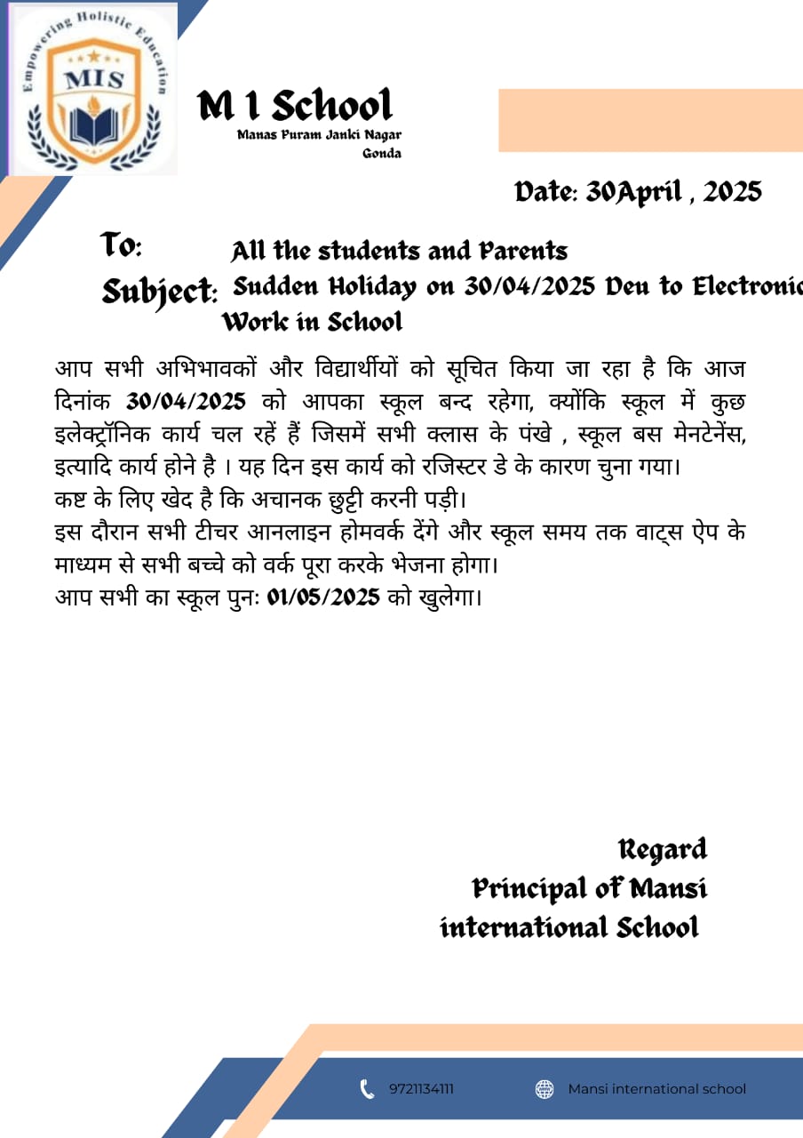 Sudden Holiday Due to Electronic Work in the School